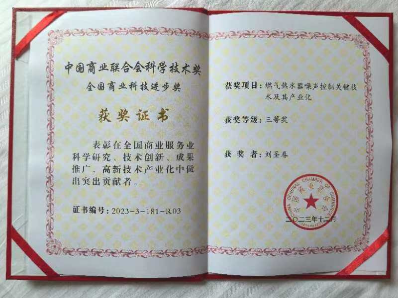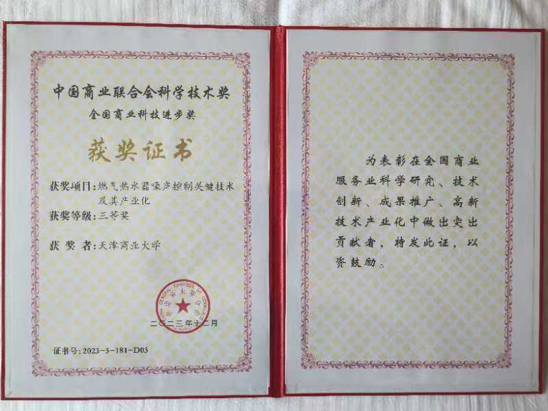 近日,在中国商业联合会科学技术奖评选中,beat365亚洲体育官方网站机械工程学院推荐的“燃气热水器噪声控制关键技术及其产业化”项目获全国商业科技进步三等奖。