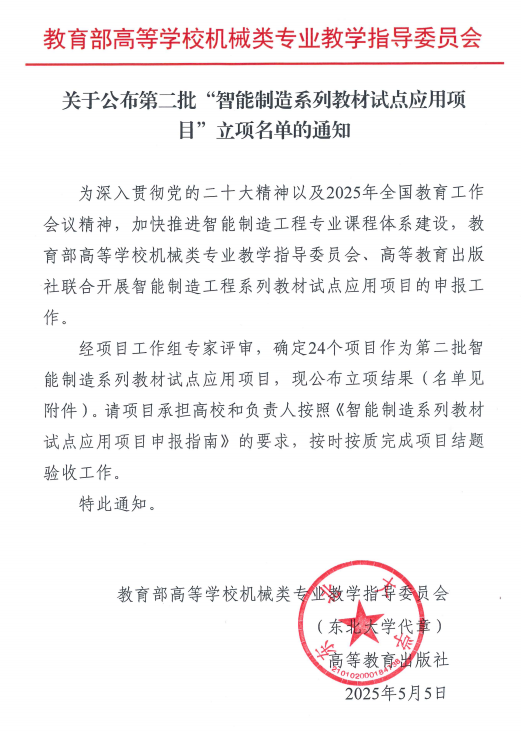 此次立项彰显了学校在服务国家战略、推动教育创新中的担当,为产业升级注入新动能。未来,学校将持续优化教育教学改革,以教材建设赋能新工科发展,服务制造强国战略。(审稿:张莹)