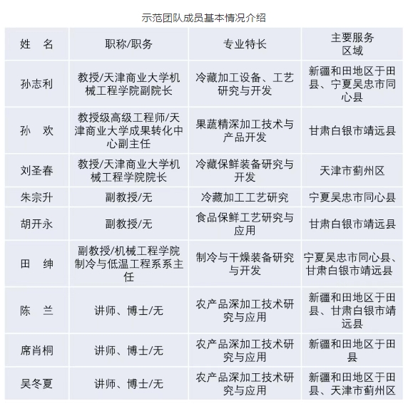 该团队由beat365机械工程学院孙志利教授领衔,由孙欢教授级高级工程师、刘圣春教授、朱宗升副教授、吴冬夏博士、陈兰博士等9名长期从事果蔬保鲜技术与装备、果蔬精深加工技术与产品的研发与应用示范的科研骨干成员组成。