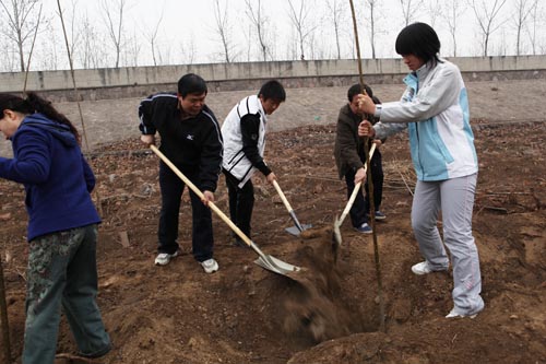 3月21日,在校学生处、总务处、团委的精心组织下, 200 余名学生前往西青区子牙河畔义务植树。校党委副书记杨万义、各学院分管学生工作书记、副书记及辅导员老师一同参加了植树活动。
