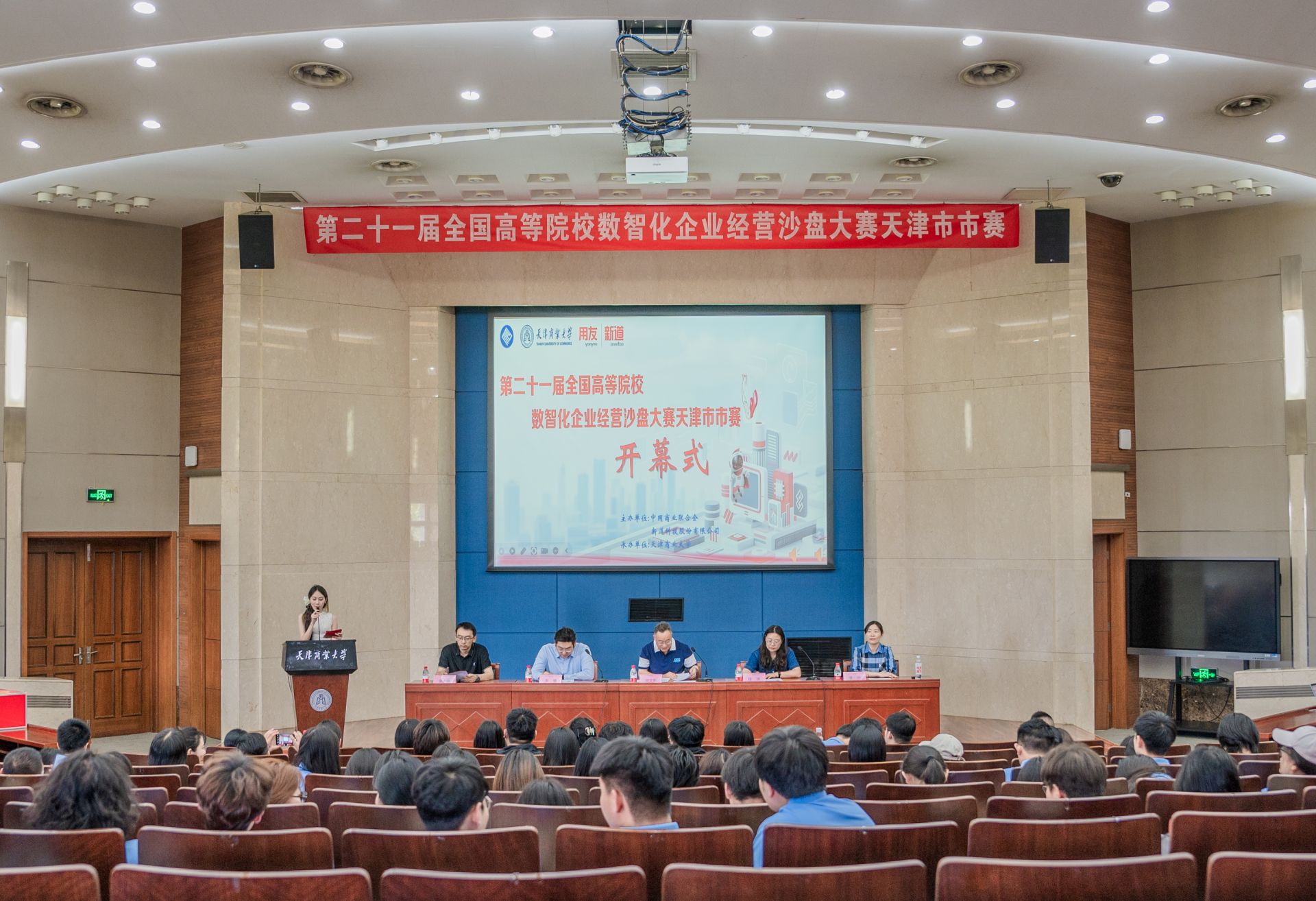 6月6日,大赛开幕式在图书馆国际报告厅举行。管理学院党委书记庞文生、教务处副处长段琪、国有资产与实验管理处副处长张志鑫、管理学院副院长李烨,以及新道科技股份有限公司天津分公司总经理李睿等嘉宾出席开幕式。