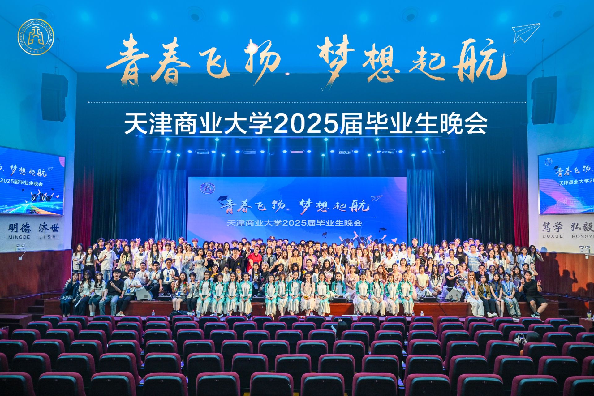 希望同学们始终铭记“笃学 弘毅 明德 济世”的天商校训,把个人理想融入祖国发展大局,在祖国各地、在基层一线、科研前沿、创新创业、新兴产业等舞台上脚踏实地、拼搏进取,用奋斗擦亮青春底色。愿2025届毕业生此去以星为灯、以梦为马,所至之处皆有繁花铺陈,在逐梦长路上,永远保持着出发时的热忱与初心,眼含星光,步履生风。