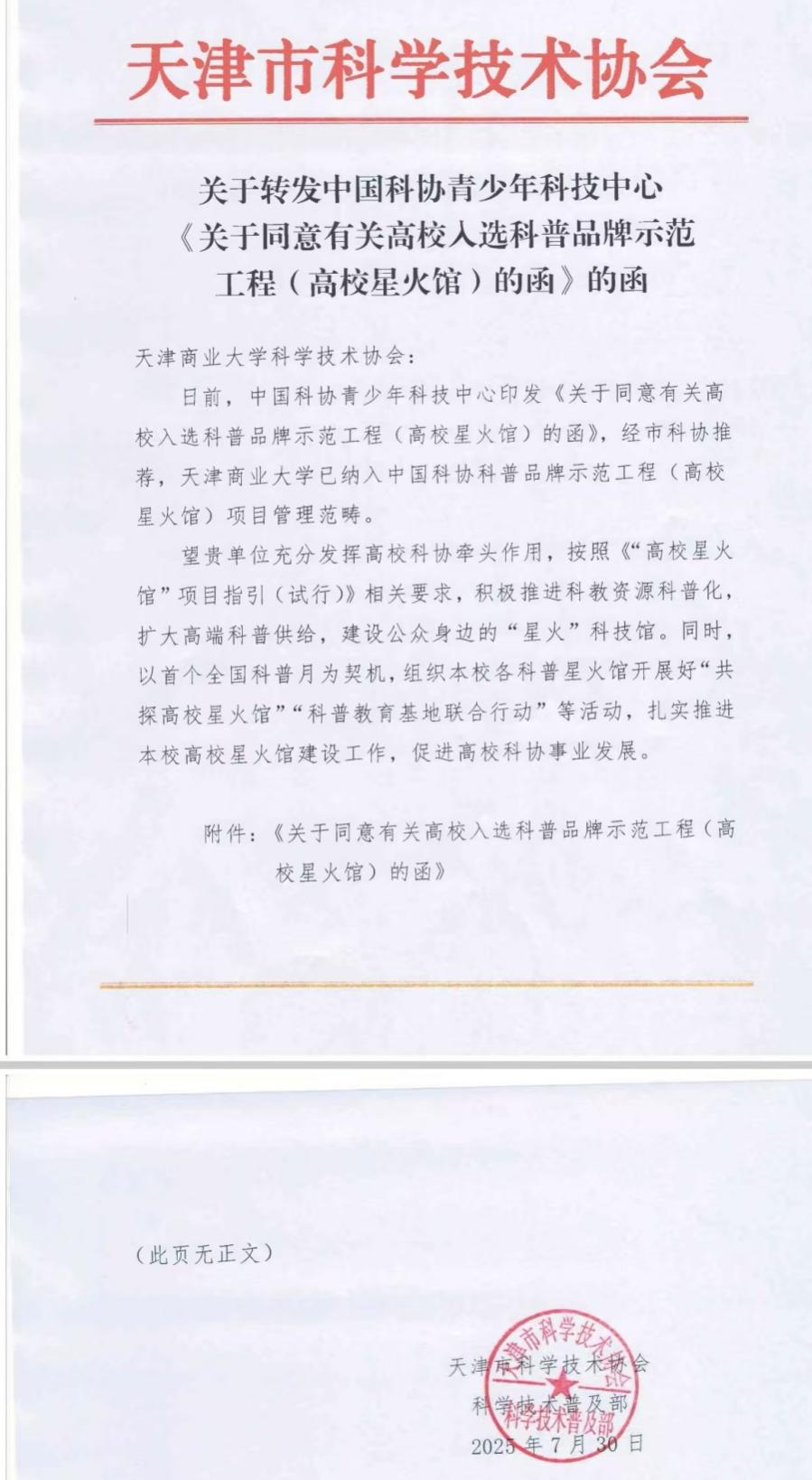近日,中国科协青少年科技中心来函,beat365成功获批全国科协科普品牌示范工程暨“高校星火馆”。